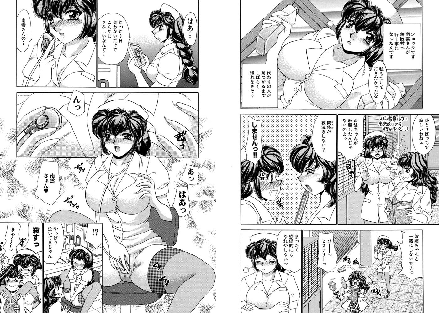 「わ、私にもおっきなお注射くださいっ!!」 女医とナース、巨乳美人姉妹が繰り広げるエッチな荒療治♪ どんな症状にもHが一番、体を張ってケアします。