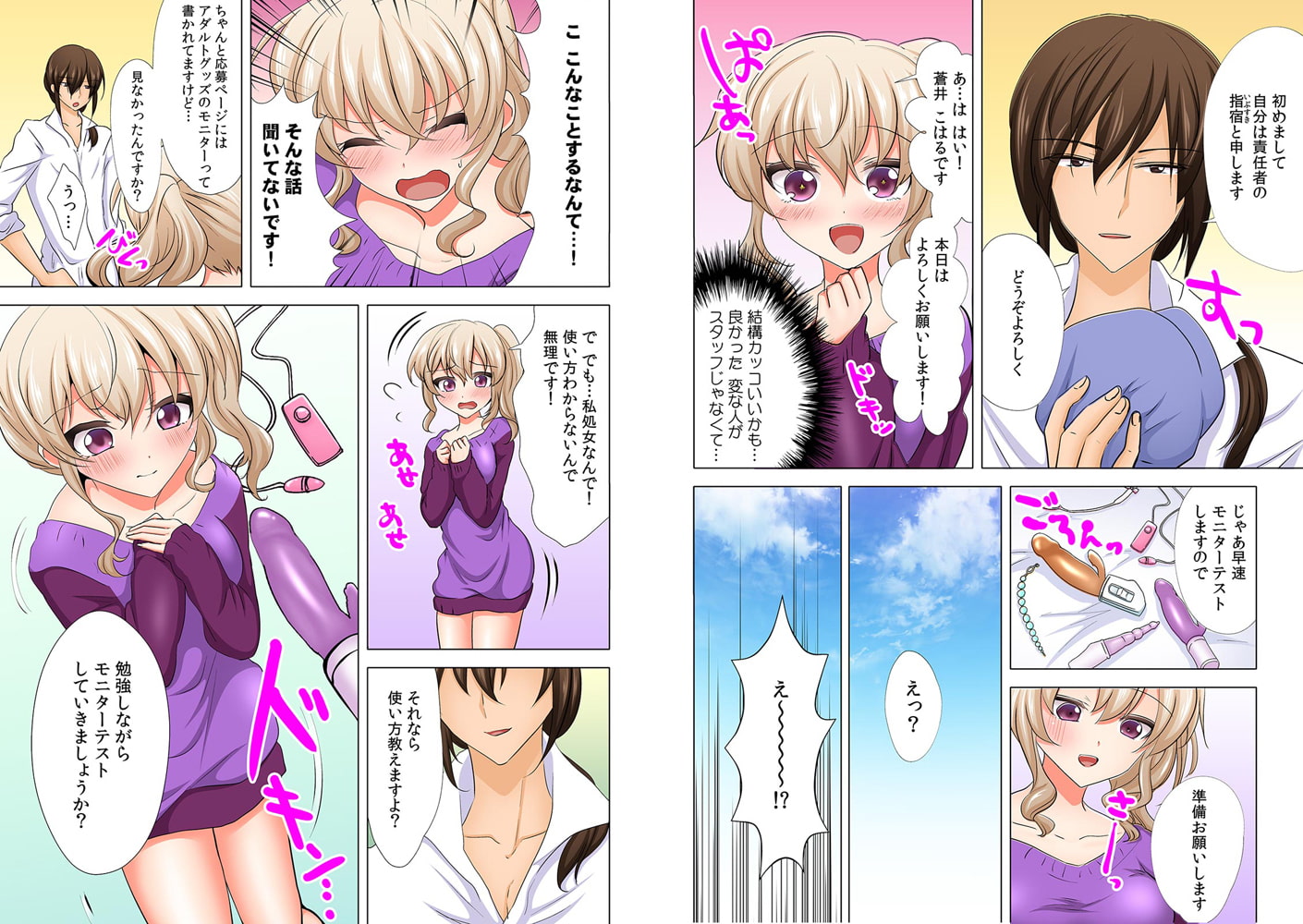 「あれ、イッちゃったんだ…キミ本当に処女?」――上京し大学デビューを果たした蒼井こはる。遊ぶお金が欲しい彼女は高給なモニターのアルバイトを見つけ応募をするが、訪れた先でテスト用品として出されたモノはたくさんのアダルトグッズ!?尻込みをする彼女に担当者の男は使い方を教えてあげると言い出すが、よく確認せずに応募した引け目から断ることはできず…。