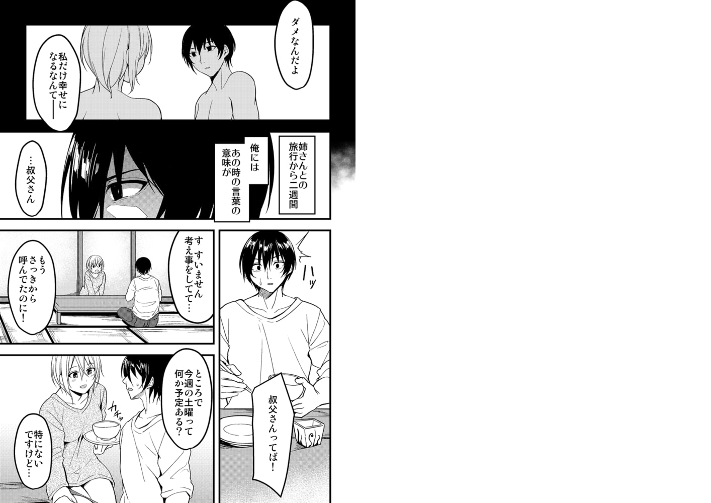 叔父と姪でこんな関係…絶対ダメなのに…。私の感じる部分を知り尽くした指先や舌に何度も何度もイカされて…――三歳年下の叔父…恭一が私に対して家族以上の好意を寄せている事は気づいていた。彼の気持ちには応えられない…。だから、結婚を決めたのに…。結婚を決めたと報告したその日の夜…寝室にやってきた叔父は、寝たふりを続ける私の下着のナカに手を入れ…。ぐちゅぐちゅと音がなるまでねっとりと弄られ簡単にイカされてしまっても、寝たふりを続ける私に彼は…。「寝たふりを続けるなら最後までする」と言い、そのまま私のナカに…。そして…その日から、結婚式の日まで…三歳年下の叔父に毎晩抱かれる夜がはじまった…。