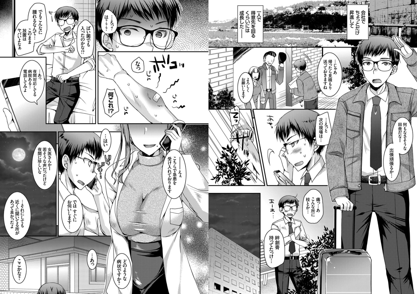 最新コミックスに収録の人気連載『童貞キラーな黒ギャル姉妹』の主人公の兄は妹二人に弱みを握られ肉体関係を続けていたが、上の妹・麗(うらら)が大学を卒業し、下の妹・遥香(はるか)が大学院に進んだ事により、しばらく妹たちとは疎遠になっていた。ある日、会社員の主人公は得意先回りで田舎に来ていたが、移動中に偶然枝で腕を引っ掻き流血してしまう。大した事ないと絆創膏を貼っただけで放置していると夜に腕が腫れ出し焦る主人公。スマホで夜間対応している病院を探し電話をすると女医が対応してくれ病院に行く事に。そこで待っていたのはなんと妹の麗だった。麗は医学部を卒業して医者になっていたのだった。一通り手当てをしてもらったので会計して帰ろうとする主人公に麗が唐突に暇で欲求不満だからセックスの相手をしてと言い寄ってくる。病院で何を言ってるんだと焦る主人公だったが久しぶりに見る麗のおっぱいにペニスは暴発寸前!あっさりセックスを受け入れてしまうのだった。いつ急患が入るかも分からない状況で兄妹再開院内セックスが始まる
