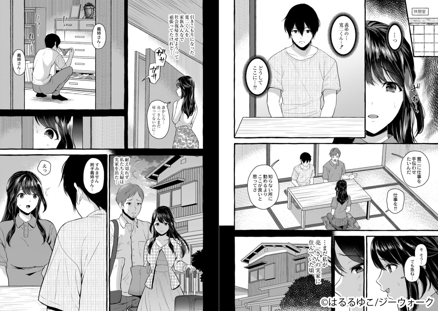 温泉地で寝取られる人妻シリーズ。1話完結のオムニバス。温泉経営をしている若夫婦のもとに、引きこもりだった義弟が社会復帰のために働きに来た。だが、義弟の真の目的は兄嫁のカラダだった。