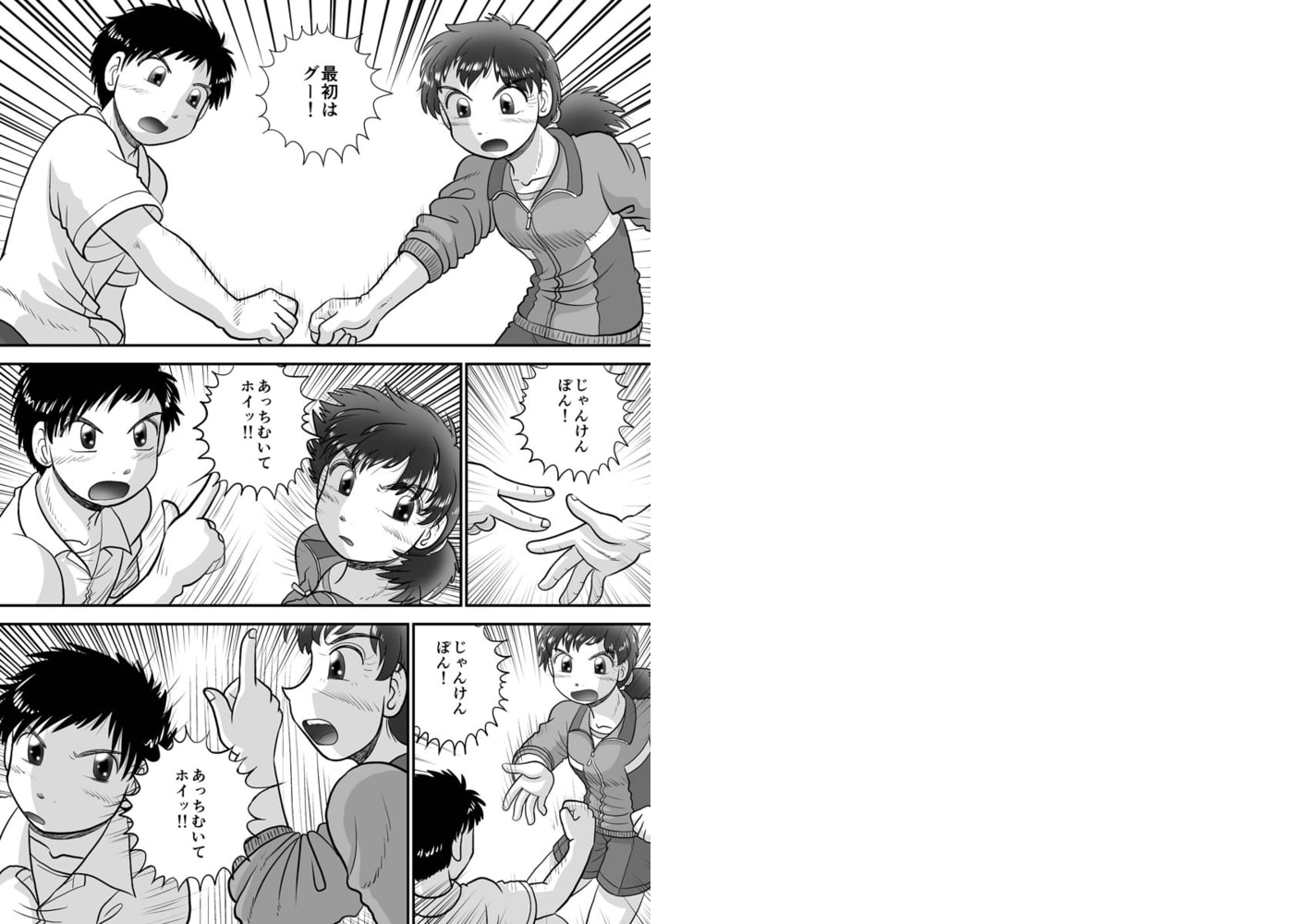 事あるごとに「あっちむいてほい!」で勝負を付ける、ヒロとサチ。