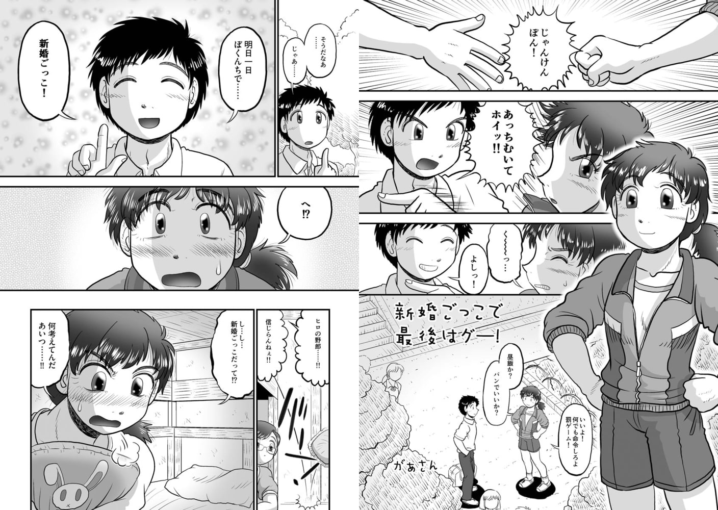著者本人が配信している同人誌「新婚ごっこで最後はグー!」と同じ内容です。