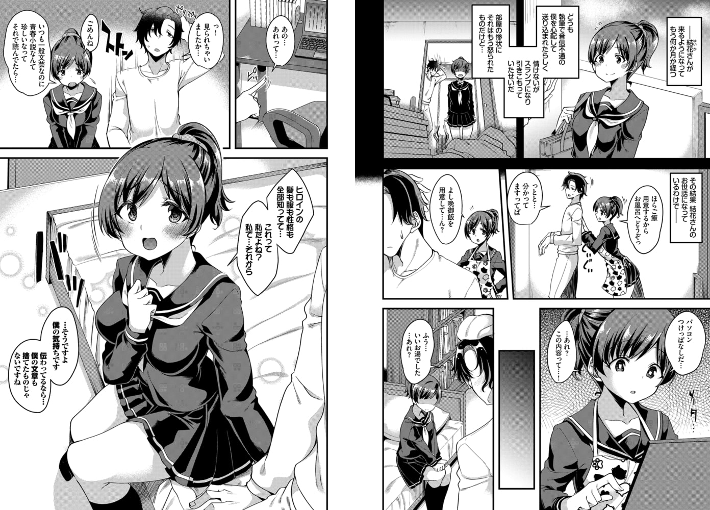 スランプに陥った作家の啓人は周りの人と音信不通となってしまい生活レベルは急降下。周囲はそんな彼を心配してJKの結花をお世話係として送り込み、生活の面倒を見てくれることになり、炊事・洗濯・掃除と周りのお世話をしてくれて至れり尽くせりな日々を過ごしていた。そんなある日、結花は啓人が執筆途中の小説をチラ見してしまう。彼女が目を通したその小説のヒロインは、髪型や服、性格が結花にそっくりで…。恋する気持ち、アナタに届けっ♪ 赤面Hの新星・極太眉毛が描く、想い繋がるピュアラブH!