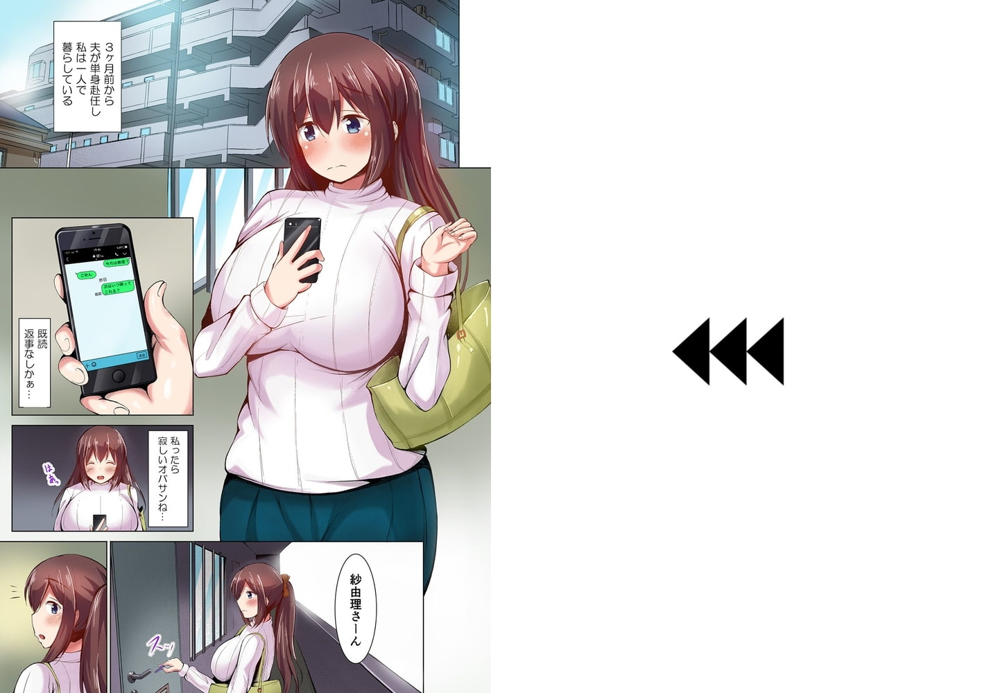 27歳の人妻・新垣紗由理は、バスト95超の豊満ボディの持ち主。夫が単身赴任で寂しい夜が続き、そんな魅力的な肉体を持て余していた。そんなある日、パート先の同僚であり隣人でもあるフリーターの安井に迫られた彼女は、押しに弱い性格に付け込まれ、肉体関係を結んでしまう。オッパイだけ、口でするだけ…と次第にエスカレートしていく安井の要求を断りきれず、最後には絶頂まで導かれてしまった紗由理は、いけないと思いつつも、疼く体を淫らに反応させるようになっていく。安井に淫乱な性質を見抜かれた彼女は、巧みなテクニックに翻弄され逃れられない快楽調教の罠にハメられて行く…!(単話版 第1話)