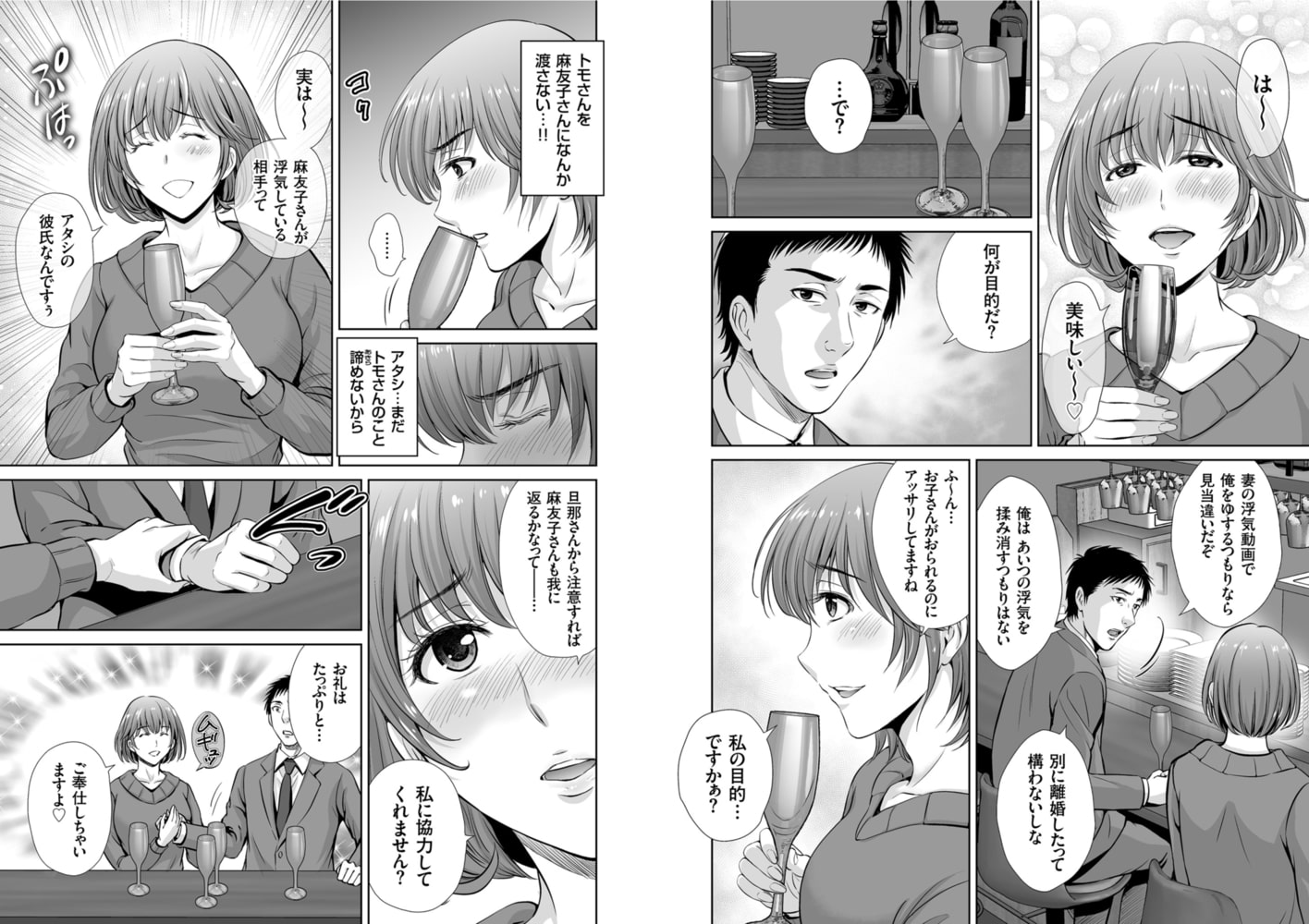 幸せな家庭を持ちながら、どこか女として満たされない気持ちを抱える主婦・原野麻友子がハマり込んだのは、ゲーム仲間とのオフ会乱交からの本気背徳。居酒屋、カラオケ店、メンバー宅、野外も含め、悦楽を貪るものの麻友子の心は副団長のトモに大きく深く傾いてゆく。仲間内の劇薬的美娘・彩香の嫉妬を存分に買った麻友子に、ついに巧妙に仕組まれた毒牙が迫る…。手始めは麻友子の夫への浮気動画送信。さらに彩香は自身の牝じみた好色裸身をエサに夫へ、あることを囁く…。追い込まれた麻友子は果たして何を選ぶのか?