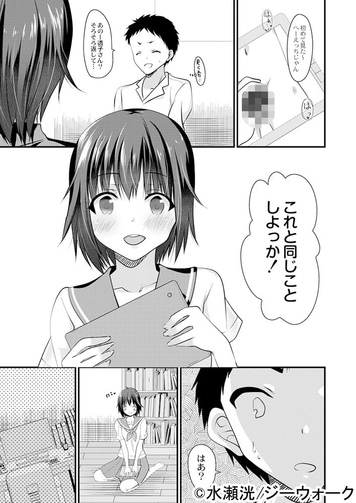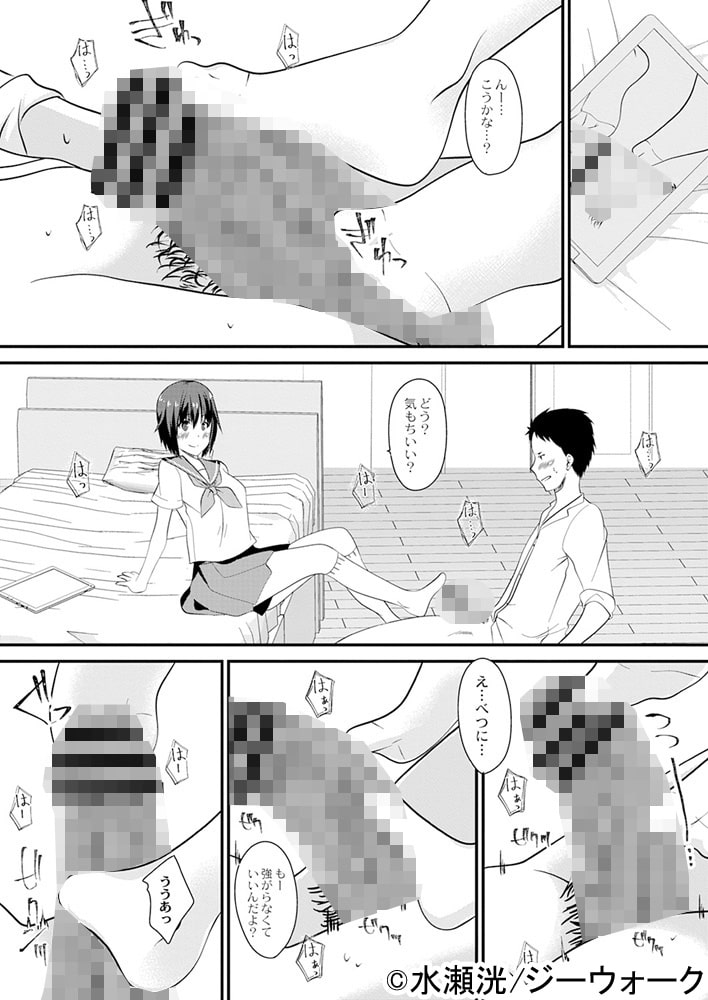 おさななじみに足コキ!?ヒロインの透子は家が隣でおさななじみである幸雄がアダルト動画を視聴しているところを目撃してしまう。動揺する幸雄に対して透子は動画と同じ事をしようと提案するのだが…