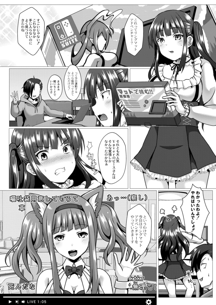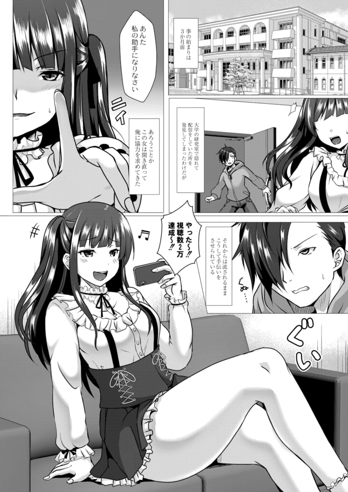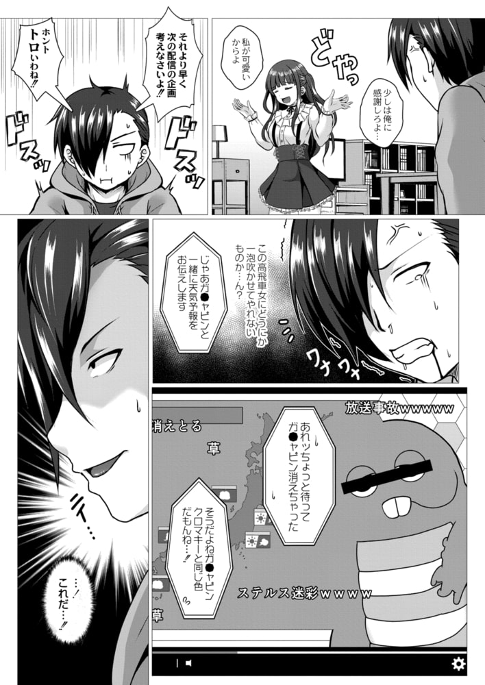 生意気女子と配信えっち!?ヴァーチャル配信者であるヒロイン真由に虐げられる日々にいら立ちを募らせていた主人公優だったがある日見た放送ハプニングを見て、悪だくみをするのだった…。