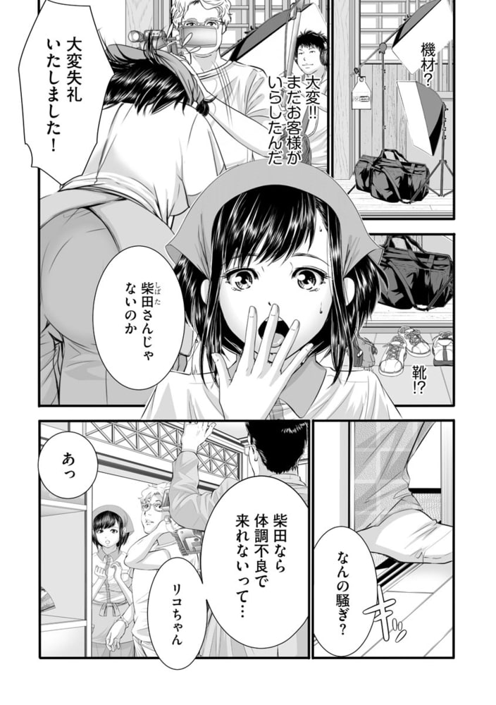 ラブホテルの清掃員として働き始めたリコだが、間違えてAV撮影準備中の部屋に入ってしまう。人手が足りないということで撮影助手としてAV撮影に参加することになったリコ。女優のきれいな体に圧倒され、セックスの迫力に押されながらも、目の前で行われる痴態にリコの股間は疼いてしまい…。そんな時監督に、見透かされたかのようにAV撮影に興味ないかと誘われてしまう…!!