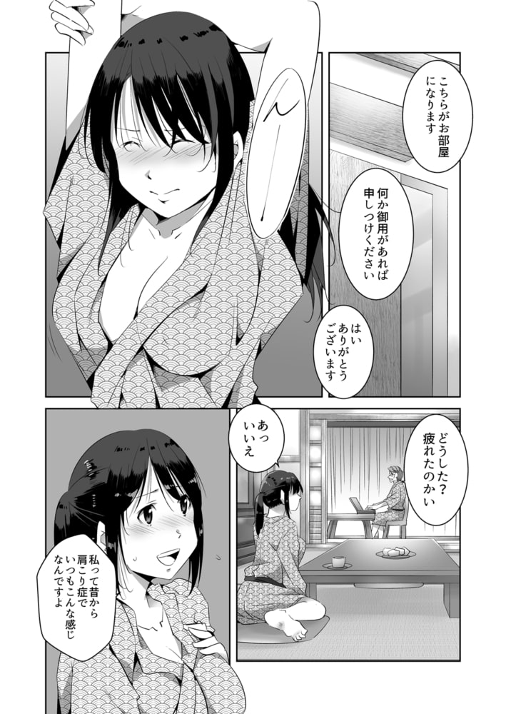 修学旅行の下見で温泉旅館に来た女教師・麻里子。丁度いい機会だし日頃の疲れを癒そうとマッサージを頼んでみたけど、施術するのは冴えないおじさんでちょっと不安。でも、優しく背中をほぐされたら、意外と気持ちいい…?これなら大丈夫そうと油断していたら、どんどん際どいところに手が伸びてきて!?いやらしい手つきでお尻や胸を焦らすようになぞってくる。こんなのおかしい…って思うのに、次第にゾクゾクとした快感を覚え、気付けば身体に力が入らず抵抗できなくて…。ぬるぬるの指先で乳首やク●をコスコスされ、熱く蕩けたアソコに太い指をずっぷり挿入されたら…あっという間に絶頂まで導かれてしまい。そのうえ、イッたばかりのナカを執拗に激しく弄られたら、もう、お潮吹いちゃうぅ…!