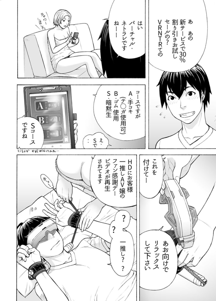 興味本位でデリヘルに頼んだサービスは「VR NTR」!?大好きなAV女優の「ゆいちゃん」の映像をVRで見せられての疑似NTRセックスに興奮を隠しきれない…!!デリヘル嬢に抜かれながら代わる代わる男とハメられ絶頂を繰り返すゆいちゃんを見せられ、ヤりたくてもヤれない疑似NTRに何度も射精しデリヘル嬢のナカはザーメンが零れるくらい中出ししてしまい…