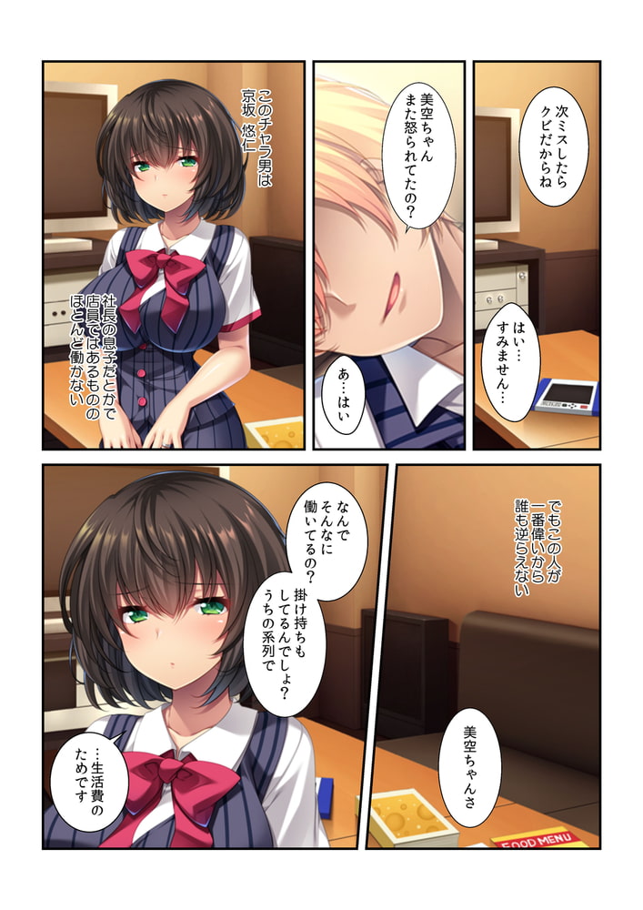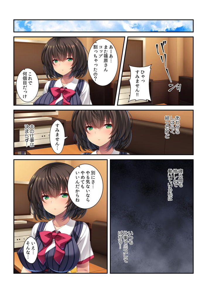 リストラされた夫を支えるため、バイトを始めた美空。だけど慣れない仕事でミスが絶えず、毎日怒られる日々。うんざりしていると社長の息子・悠仁から「俺の言うことを聞いたら、今よりもっとお金をあげる」と提案される。欲に目がくらみ引き受けると、バイト終わりに密室へと連れ込まれて…。無理やり制服をはぎ取られ、フェラを要求されてしまう。「これは生活のため…」そう言い聞かせながらチ○ポをジュポジュポと舐めまわす。嫌々シてるはずなのに…乱暴に身体を弄ばれ、しっとりと濡れるアソコ。かつてない快感に身体が疼いて止まらなくて…!!お願い、もっと奥まで…ナカまでハメられたいのぉ!!
