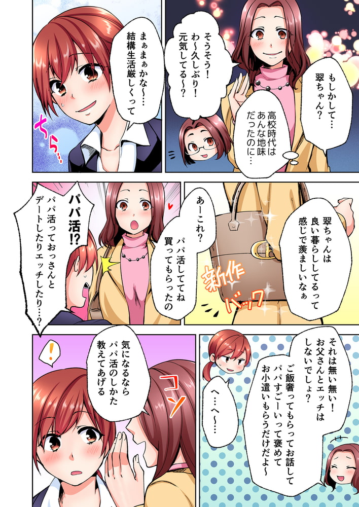 「こんなにすんなり挿入るなんてヤラシイ娘だね」イッたばかりなのに連続で与えられる快感。嫌なハズなのに気持ちよすぎて―…!お金欲しさのあまりパパ活を始めた由梨。簡単に稼げてラッキーなんて調子に乗っていたが、ある日ついに肉体関係を求められてしまう。オジサンと寝るなんて絶対無理だし、彼氏にバレる前にパパ活なんてやめよう…そう決心した矢先、彼氏の父親がパパ活の相手だということが判明。息子に黙っておく代わりにと脅されてしまう。敏感なク○をねっとり舐め回しながら奥をかき混ぜられたら、感じたくないのに声が漏れて…。そしてついに硬いアレが入口を押し広げてきて…ダメ、近くに彼氏がいるのにお父さんとSEXするなんて!