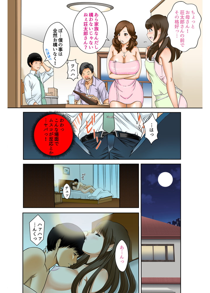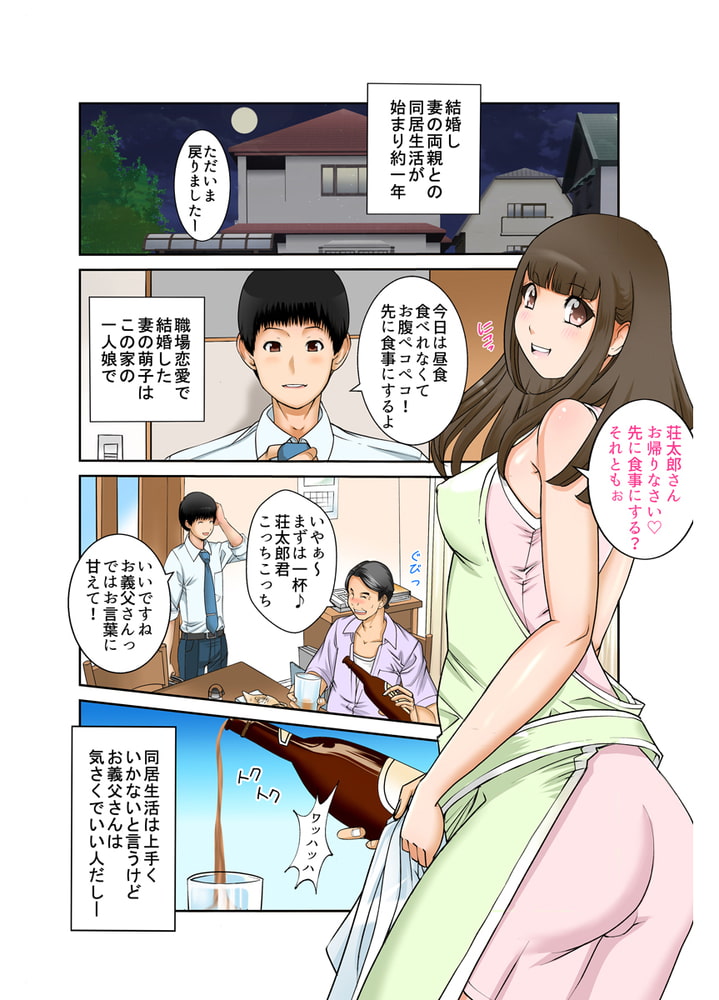 荘太郎は妻・萌子とその両親の4人暮らし。夫婦関係は良好で、両親の人柄にも恵まれ平穏な日々を過ごしていた。ただ同居を始めて以来、義母の熟女ならではの完熟エロボディと爆乳に日々ムラムラしていることは妻には内緒だが…そんなある日、荘太郎が帰宅するとある不思議な現象が起きた。「妻と義母のカラダが入れ替わってる!?」これって夜の営みはどうなるんだ!?と思っていると、案の定義父は妻(義母)とHしていて!?こんなの絶対おかしいけど…よく考えたらこれって、ずっと憧れていた義母(妻)のむっちりエロボディを好きにできるチャンスなのでは!?