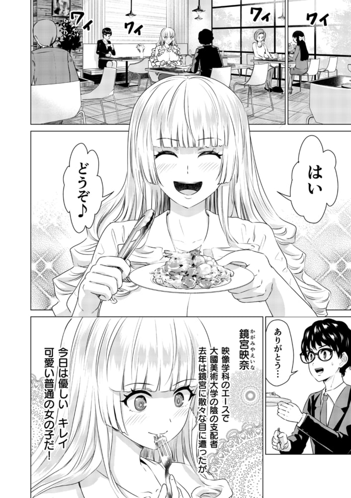 以前、弱みを握られ関係を持った映像学科のエースで映画監督を目指す、鏡宮映奈(かがみやえいな)と市丸は映画鑑賞をした。以前は平凡な意見やセンスに対して感情的な意見をぶつけてくる彼女が今日は妙に優しい。映画の帰り、ギャップの有る男性が好きと打ち明けられそのまま二人は…