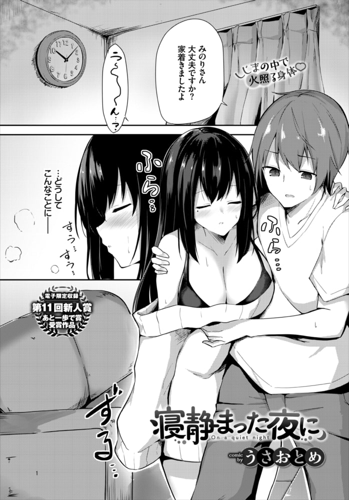 主人公は、卒業祝いの飲み会で泥酔してしまったみのりを介抱していた。主人公は、そんな彼女のご立派な胸を見て、寝ているからバレないんじゃないかと手を出してしまう。しかし触っているうちにみのりが起きてしまい、そのままセックスをすることに。酔って色っぽい彼女の姿を見て、いつもより燃え上がった主人公は貪るように身体を重ね…。第11回コミックバベル新人コミック大賞あと一歩で賞受賞作品!