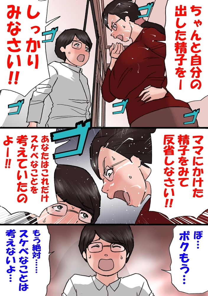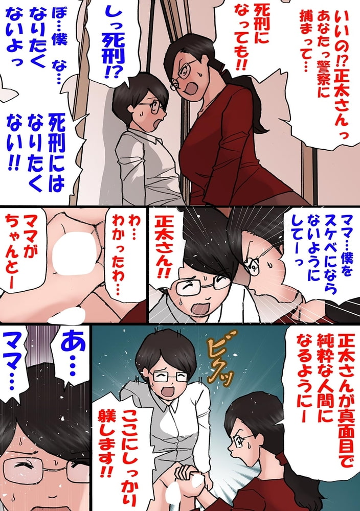 「正太さん!なんでおち〇ちんを勃たせたの!!」――義ママは僕を性的に歪みのない男性に育てたいと考えているけど、僕はどこでもすぐにおち〇ちんを勃たせてしまいます。そして、それを見つけたママは怒りながらも、僕の精子を一滴残らず搾り取るのです。そんなある日、スケベな事は考えないと約束していた僕がこっそりオナニーをしていることがバレてしまい…。しかもそのオカズはママの裸を盗撮した動画で。怒りが頂点に達したママは突然服を脱ぎ「そんないやらしい考えはママの体で全部抜き取るのよ!!」と、いきなり僕の上に跨って、おち〇ちんを中に挿入れはじめて…!ママ、そんなに激しく動いたらすぐに出ちゃうよ!だって…我慢しなさいって言われても…もう無理!ママのオマ〇コに僕の全部出ちゃってるよぉーー!