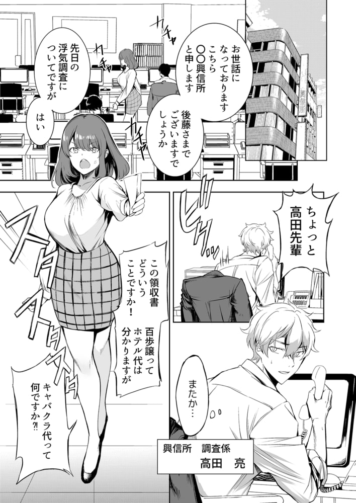 興信所で調査員として働く俺は、いつも小煩い事務の美橋結衣が大の苦手。ホント顔以外は可愛くねーな!と思っていた。そんなある日、浮気現場の張り込みの人手が足りず困っていると美橋が志願してきて。ふたりきりの車内で不倫SEXを盗み聞きしていたら、美橋が恥ずかしそうにモジモジしている…?これは普段の仕返しのチャンスと、からかい半分で浮気現場の会話を復唱させることに。すると、ふとした拍子に美橋がアソコをビショビショにしているのに気付いちゃって!?「ターゲットのエロい声聞いて濡らしたの?」そう煽ると真っ赤になって否定する美橋に欲情が止まらず…。とろとろに潤んだアソコをくちゅくちゅ弄って、もっと喘がせて啼かせたくなる…!