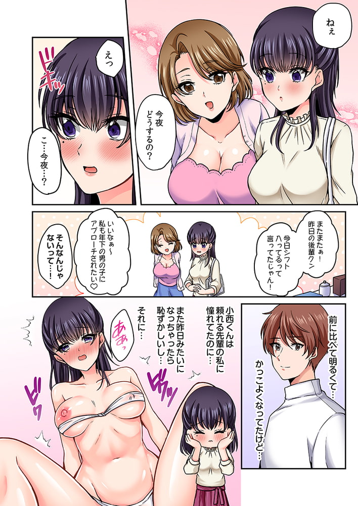 「マッサージなのに…敏感なところほぐされると気持ちよくて、腰浮いちゃう…っ」――温泉旅館にきたOLの香苗は、親友の誘いでマッサージを受けることに。ところがやってきたのは学生時代の後輩・小西で…!?垢ぬけて格好良くなった小西にどきどきしつつ施術がはじまると…えっ、こんなに際どい格好するの!?さらに、触れられたところからしびれるような快感が走って――。感じているなんてバレるわけにはいかないのに…!香苗の気持ちとは裏腹に、敏感になった身体はツンと立った乳首に指が触れるだけでイってしまい…!?「ここもしっかりほぐしていきますね」開脚させられて気持ちいいところ刺激されたら…もう…イクッ!