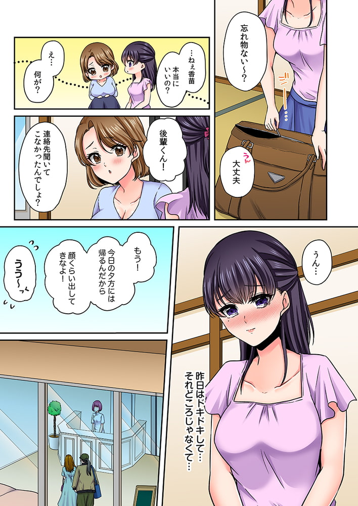 「マッサージなのに…敏感なところほぐされると気持ちよくて、腰浮いちゃう…っ」――温泉旅館にきたOLの香苗は、親友の誘いでマッサージを受けることに。ところがやってきたのは学生時代の後輩・小西で…!?垢ぬけて格好良くなった小西にどきどきしつつ施術がはじまると…えっ、こんなに際どい格好するの!?さらに、触れられたところからしびれるような快感が走って――。感じているなんてバレるわけにはいかないのに…!香苗の気持ちとは裏腹に、敏感になった身体はツンと立った乳首に指が触れるだけでイってしまい…!?「ここもしっかりほぐしていきますね」開脚させられて気持ちいいところ刺激されたら…もう…イクッ!