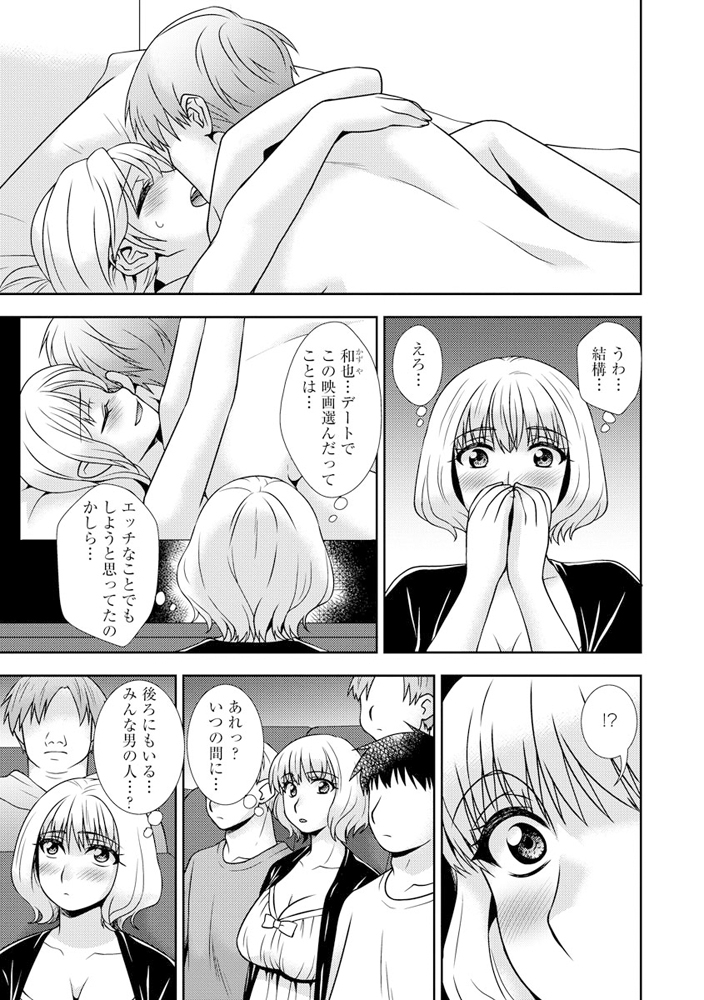 やがて映画は過激なラブシーンに入り、居心地が悪くなった久美子は、出ようかと席を立ちかけたのだが、ふと太腿に手が当たる感触に気がつく。