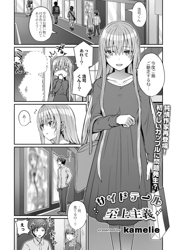 彼氏が何かに夢中で…?デートに出かけた際に、女の子のポスターに見とれている彼氏を見て焦るヒロイン。後日自分の事を捨てないでくれと懇願するのだが、どうやら彼は「サイドテール」が好みらしく…