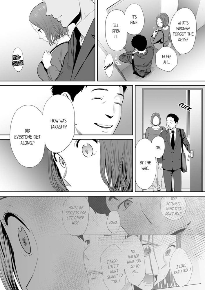 In the dark living room, the naked Mika approaches her sleeping husband. However… It isn’t her husband, but his subordinate!? “How daring, for the Missus to attack me.” …No, this wasn’t what I…