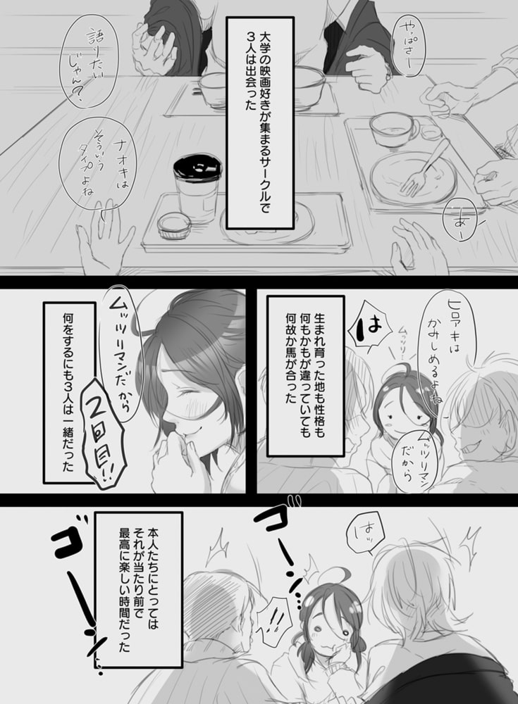 ――大学のサークルで出会ったミホ、アキヒロ、ナオキ。