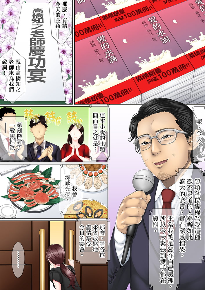 「我…才沒有覺得舒服…!」「嘴上那樣講,下面…卻濕了喔…」被前上司撲倒之後無法抗拒,人妻嬌喘著高潮了。這場通姦是對老公的背叛嗎…——在出版社工作的雪音與知名官能小說家結婚了。然而結婚之後的小說家卻陷入瓶頸,寫不出暢銷作,收入也是一降再降。面對消沉的丈夫,雪音為自己的無能為力而悔恨。就在這時,雪音曾經的上司鶴野編輯,造訪了雪音的家。趁著丈夫不在,鶴野奪走了雪音的貞操…!?「我們創作出點子不就行了嗎。讓妳老公以我們偷情的事為藍本創作吧!」——這是為了老公…在這句話的驅使下,身為妻子的雪音跨越了底線。在雪白柔嫩的肌膚刺激之下怒張的上司下體。就算想要抵抗,意志也敵不過在久違的快感之下疼癢的身體——!?