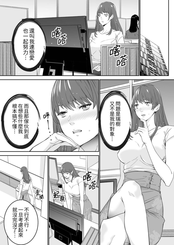 瀬藍一直沒有男朋友,總之專心於工作。平時倒也會因為聽到後輩結婚的消息而有些著急,結果今晚也依然在辦公室裡和同事青山瑞樹一起加班。在工作上遇到瓶頸的兩個人,乾脆在辦公室裡喝起了酒。「談戀愛和做愛是兩回事!」不知是不是因為喝醉了,瀬藍一不小心說出了真心話,然而就在這時,瑞樹竟然強吻了她——!?情色的舌吻讓瀬藍的嘴變得黏黏糊糊,那裡也逐漸開始變得濕潤起來…