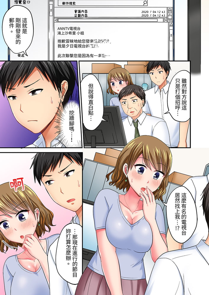 我不想隔著鏡頭,而是想更加直接地…拍到更有魅力的她!「不行啊…太近了…要插進來了…!」——電視節目導演里見為了拍攝一檔溫泉節目,來到了自己老家經營的旅館。和他一起來的女主播滝上沙希里,雖然是個大美人,但是性格卻不太好。然而…對著鏡頭入浴的滝上,那因為溫泉的溫度而逐漸變得微紅的肌膚實在太色情了…!因為想要引出她的魅力而不由得暴走了的里見,完全貼上了一絲不掛的她!?「喂…你在拍哪裡了啦!」里見那變得堅挺無比了的下體,已經緊貼上了滝上的那裡——!