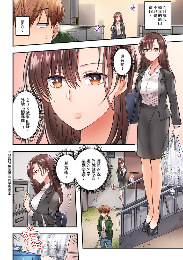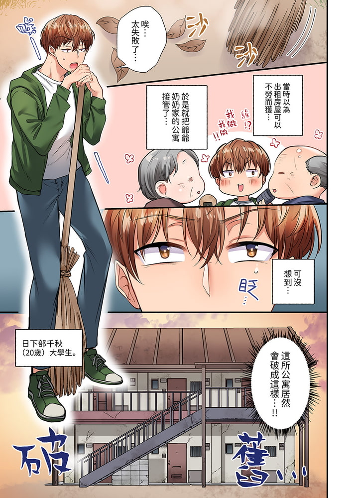 日下部千秋是一間破爛公寓的房東。正當他結束一天的打掃工作打算回到自己的房間時,結果突然發現2樓漏水了!2樓住著這裡的問題房客奈緒。日下部趕緊趕往二樓,結果他竟然剛巧裝上了一絲不掛躺在地上的奈緒!而且他還因為滑了一跤而將下體插進了奈緒的那裡!?看著眼前一抖一抖的巨乳,日下部根本無法忍耐…!他瘋狂揉著仿佛能讓手指陷進去的柔軟巨乳,還用舌頭不斷刺激硬硬的乳尖…「我都說不可以這樣做了…」看著滿臉通紅,用濕潤的眼睛注視著自己的奈緒那副欲拒還迎的樣子,日下部更加無法停下下體猛烈的活塞運動…!