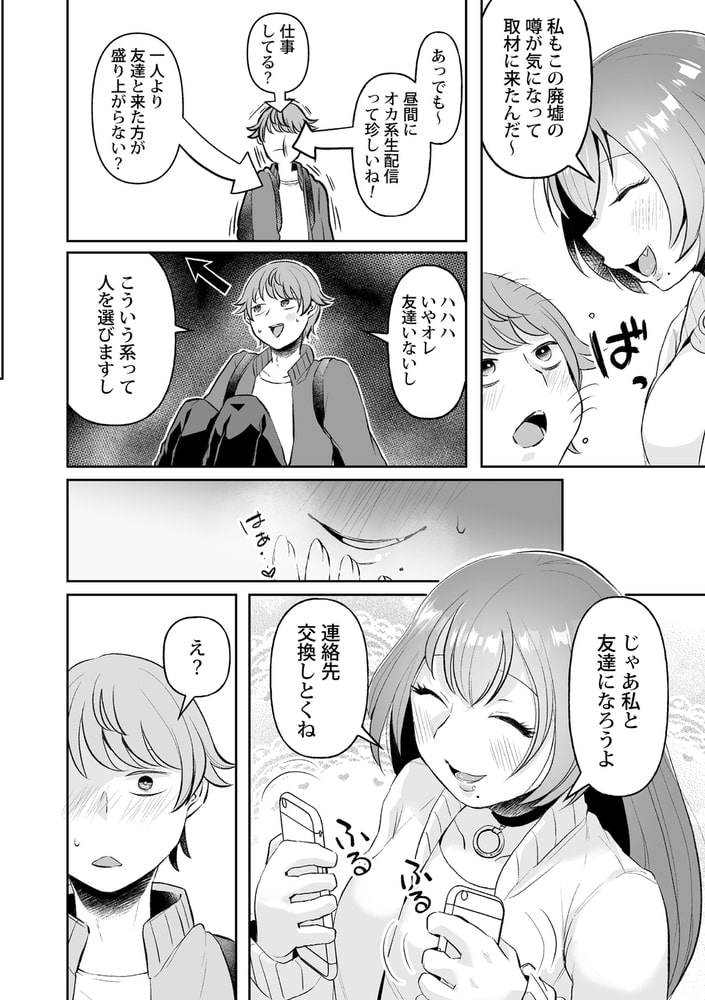 卜部はオカルト系動画配信者。たまたま生配信中に出会ったアリサと仲良くなる。一緒に最近噂の廃墟を調べていくと突然アリサは卜部に覆いかぶさる。