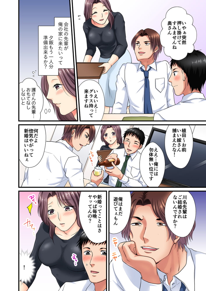 「旦那の代わりに俺がマ●コ使ってやるよ」新妻のあさみは優しい夫に恵まれ幸せな毎日を送っていた。そんなある夜、夫が連れてきた会社の先輩はデリカシーがなく下品な人で…。早く帰って欲しいのに、やむを得ず一晩泊める事になってしまう。深夜、体をまさぐられる感覚に夫だと思い身を委ねたら、いつもと違う激しい愛撫で攻められて…!硬くなったクリを摘まれると同時に、アソコに差し込まれる熱い舌。ねちっこく舐められる度に押し寄せる快感に体が疼いて止まらないッ!ところが後日、相手は夫ではなく先輩だったと知らされて!?「口止め料、ちょうだい?」脅されたあさみは、先輩のゲスな要求を拒めず―。だめ、夫以外のアレが挿入ってくるぅ…!