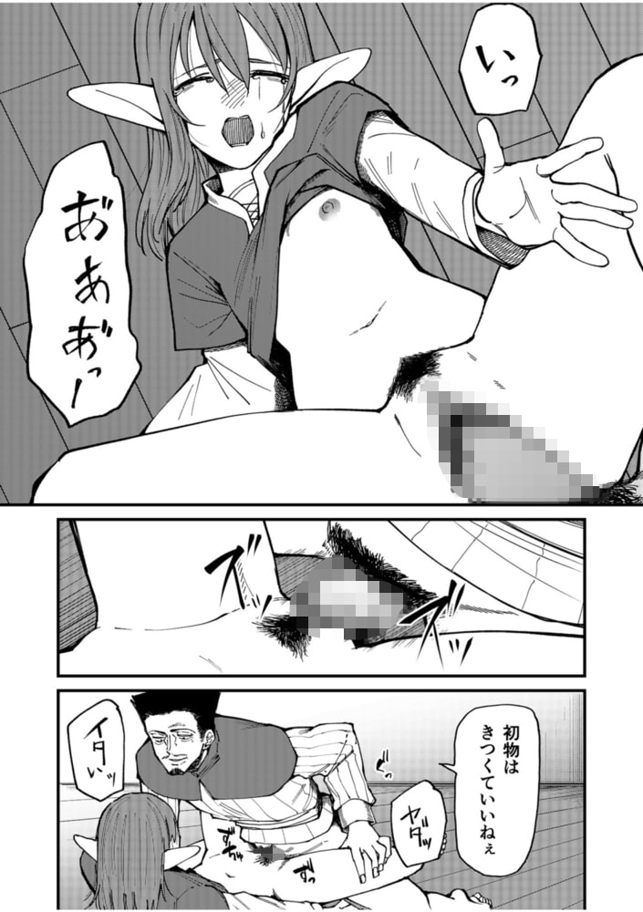 「痛い…どうしてこんな目に…」村を突然人間に燃やされたエルフの少女マリー。人間に捕らえられ処女だったマリーは犯される。そして毎日毎日犯されることで、すべてを慣らされてしまった。諦めていた中、助けに来てくれた人間のウィル。あたたかい手を差し伸べ、綺麗な服を与え、優しく慰めることでマリーは安心し、心を開いていく。とある晩、とうとうウィルの部屋に誘われる。人間に犯され続けたことを思い出しながらも、おそるおそるマリーはウィルの部屋に入っていく。