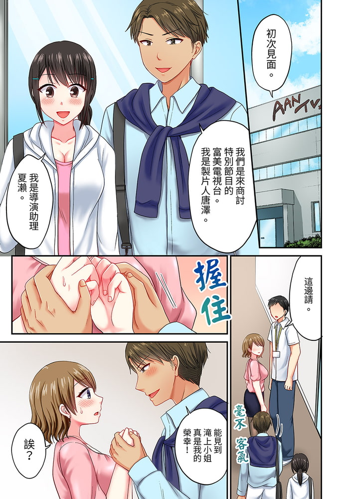 我不想隔著鏡頭,而是想更加直接地…拍到更有魅力的她!「不行啊…太近了…要插進來了…!」——電視節目導演里見為了拍攝一檔溫泉節目,來到了自己老家經營的旅館。和他一起來的女主播滝上沙希里,雖然是個大美人,但是性格卻不太好。然而…對著鏡頭入浴的滝上,那因為溫泉的溫度而逐漸變得微紅的肌膚實在太色情了…!因為想要引出她的魅力而不由得暴走了的里見,完全貼上了一絲不掛的她!?「喂…你在拍哪裡了啦!」里見那變得堅挺無比了的下體,已經緊貼上了滝上的那裡——!