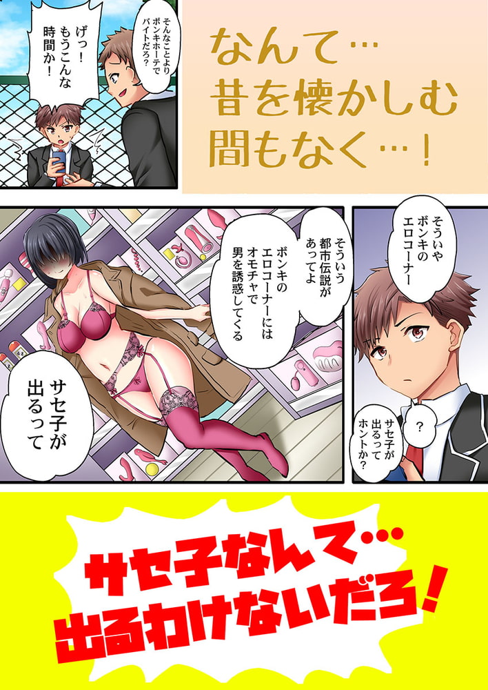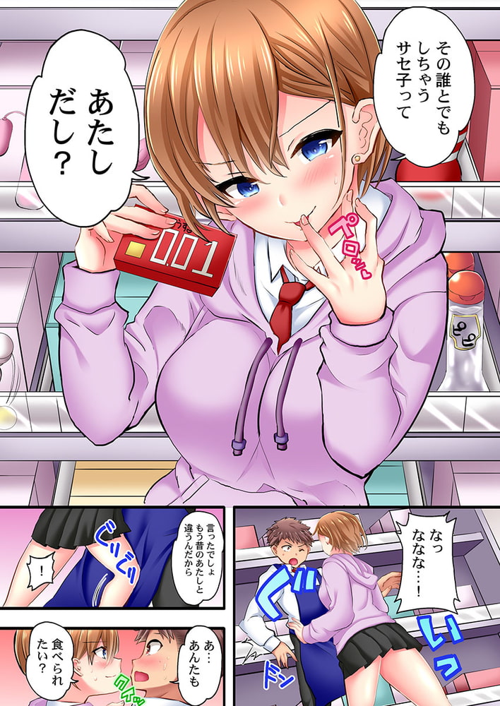 「見られながら…イッちゃうっ!」商品のオモチャでガクガクにされ…男達の視線に晒された生意気JKは…イキ堕ち寸前!?――主人公・滝登は、バイト先のアダルトコーナーで男漁りをするサセ子の噂を耳にする。半信半疑の仕事中、ノレンの中で同級生ギャル・沙知に遭遇!噂通りビッチな誘惑で迫ってくるが…何故かその顔は真っ赤…?そんな中、噂のサセ子を見に来た男共に、棚越しで2人のセックスを見せつける事になってしまい…!ローターで跳ねるカラダ…喘ぎ声が漏れる店内…初めて見る幼馴染のオンナの表情に…腰が止まらない…っ!