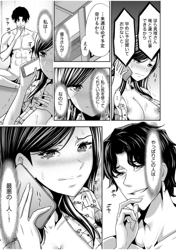 「マッサージだけって約束が…おねがい部長…挿れ…ないで…」出張で部長と相部屋になった真理。二人は過去、不倫関係になっていたこともあり、その気安さから夫とセックスレスである事を告白。その対象法として、部長はオイルマッサージを提案する。「夫とセックスがしたいです…」すがる様な思いで懇願する真理に部長は真理の下半身に昔の様に指を差し入れる…!