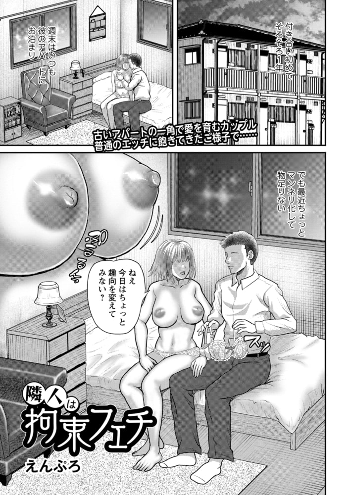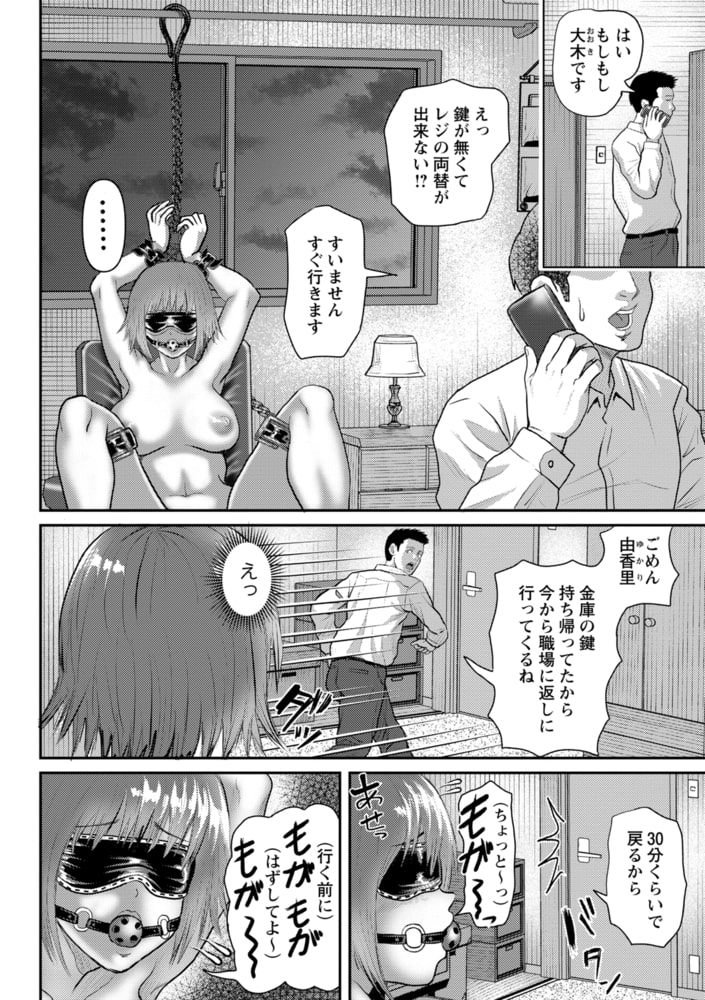 普通のエッチに飽きた由香里は直人に拘束をお願いするが、彼が急用で出てってしまい一人放置されてしまう。その間を狙ってお隣さんが二人の部屋に侵入し、拘束された由香里を責め立てる!!