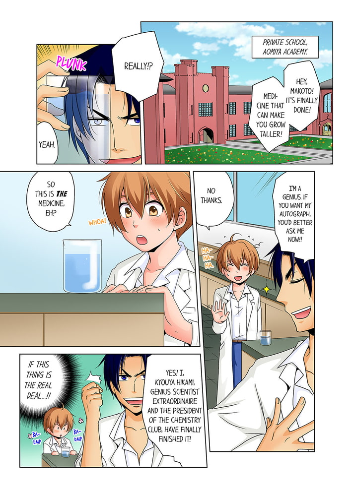 One day, due to the failed experiment in the chemistry club, Makoto turned into a woman. His senior and advisor were curious about it, so they began to lick his boobs and stir up his private parts...!! His freshly made pussy was very sensitive, slippery, wet, and twitching that it could cum anytime! A woman's body feels so good! Putting that aside, this is a boys' dormitory and school! If they find out, I'll be in big trouble (sweat). Sure enough, my classmate finds out and fucks me in the infirmary. My senior also plays with me in the library... Makoto feels more and more pleasant with a woman's body. I'm a man...! Teach, hurry up and return me back to normal...!