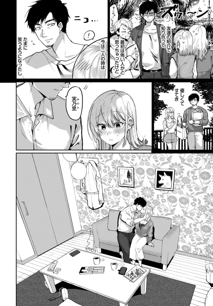 独特肉感マイスター朝野よみちプレゼンツ! 心トキめくイチャラブH♡ 実乃里はいつもキス止まりの彼に我慢して欲しくない一心で手コキ、玉なめ、乳首なめとご奉仕を開始! 耐えきれなくなった彼は実乃里を押し倒し…!