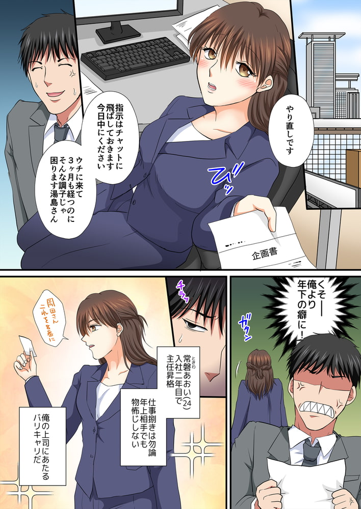「アソコが切ないの…触って?」冴えないアラサー社畜・湯島は、女主任のあおいに手厳しく指導されてばかり。彼女の物怖じしない言動と仕事っぷりは年下ながら尊敬しているけど、やっぱムカつく!そう思っていたのに―。ある日職場で倒れ、目を覚ますとあおいに膝枕されていて。優しい表情で心配してくれた上、顔に当たるおっぱいの感触が柔らかくて…普段とのギャップで疲れマラはギンギンに。バレたら絶対引かれる…!だけど、あおいはチ●コを取り出し扱き始めた!?ねっとり丁寧にしゃぶられ、さらに跨ってきたと思ったらパンスト越しに先っぽをこすこす刺激されてしまい――「もっとシて?」だなんてエロ過ぎる年下上司、SEXできるのは俺だけ!?