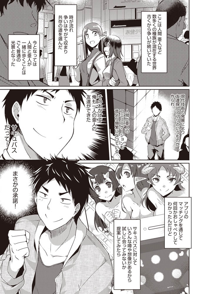 人間、亜人など多くの種族が混在する世界。種族の壁を通り越してマッチングアプリで出会ったサキュバスは妖艶で大人のイメージとは程遠く、想像と違って可愛い女の子のサキュバスだった。彼女のペースでしょうがなく普通のデートをするが気がつくとホテル・・・。俺のターン!?と勢いよく事にのぞむもすぐに形勢逆転!?最初に期待したようなサキュバスに豹変して濃厚な性交がはじまり性も根も搾り取られてしまう!?