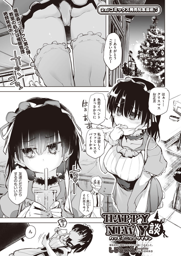 催○姦コミックス第2弾!「教室の処女は催○管理」絶賛発売中!しじょっこ2ndコミックス発売記念漫画♪♪世間ではクリスマスにお正月とリア中たちの楽しいイベント真っ盛りの中、同志だと持っていた友達も急にリア中アピール・・・。そんな中ファミレスで寂しくアルバイトしている最中も届くSNSのリア中通知に、繁忙期すぎた店内で店長さそって無理やりセックス!!