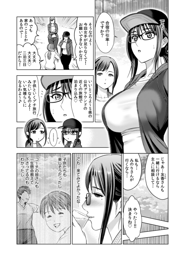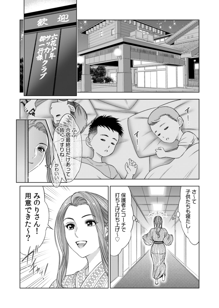 「セックスでめちゃめちゃにされたいー!」地味な人妻・知房みのりは、息子のサッカークラブの合宿に参加することに…。練習が終わった夜。たわわな巨乳を浴衣につつんだみのりは打ち上げの宴会場に向かう…。若くてオス臭いコーチたちのいやらしい視線をよそにビールで酩酊してしまったみのりをみて、コーチたちはその巨乳を揉みしだき始めて…。