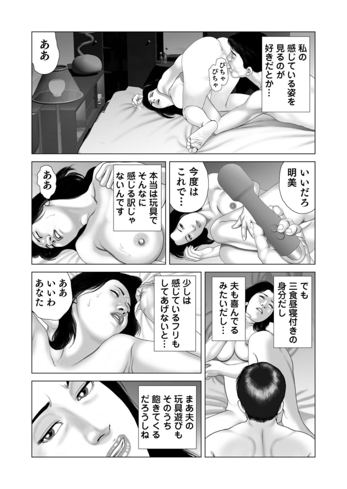 結婚して10年近くなるが、なかなか子宝に恵まれない夫婦。新婚当初は、頻繁に夜の営みもあったが、だんだんと月日が経つにつれ、その回数は減っていった…。いまでは、セックスをしても、全く私の身体に反応しない夫に一層悩んだ妻は、ネット通販で様々な精力剤を購入し、試してみたが効果はなく…!?そんなある夜、夫婦の夜の営みを覗く者がいた…。人妻の知られざる背徳の“性生活”を描いた間宮聖士、待望の読み切り連載作品!