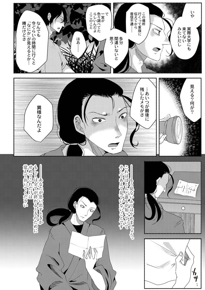 謎を解くべく、主人公は連れの男と長野県の某所を訪れた。