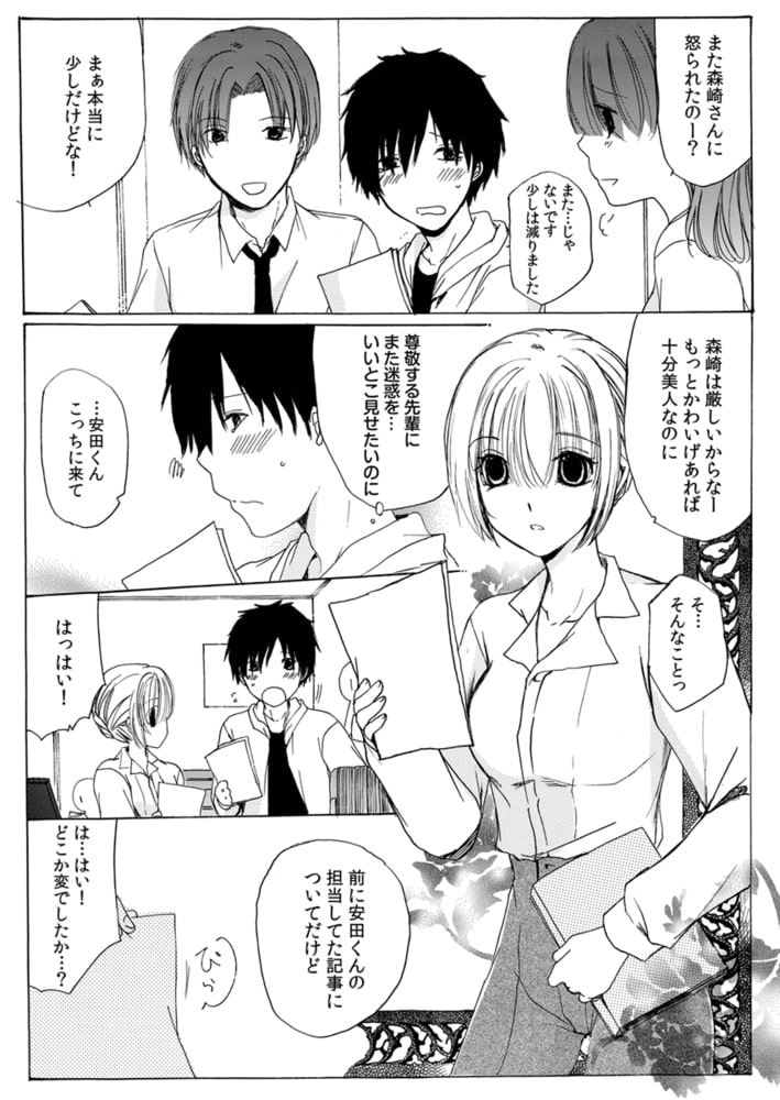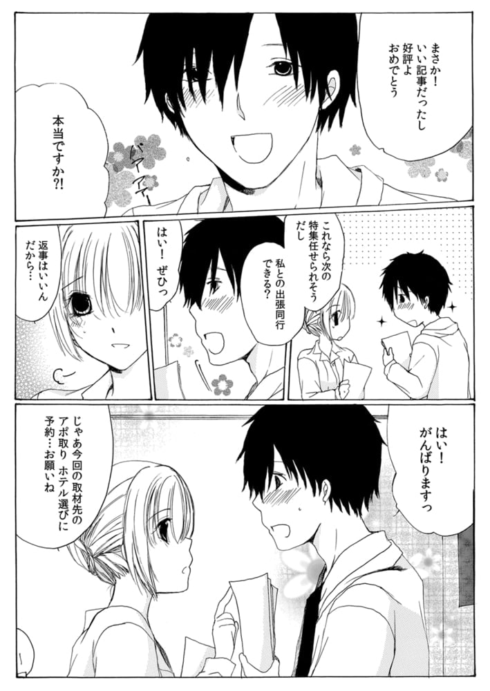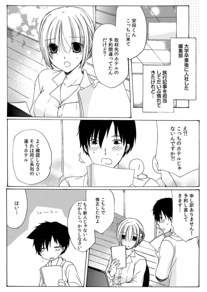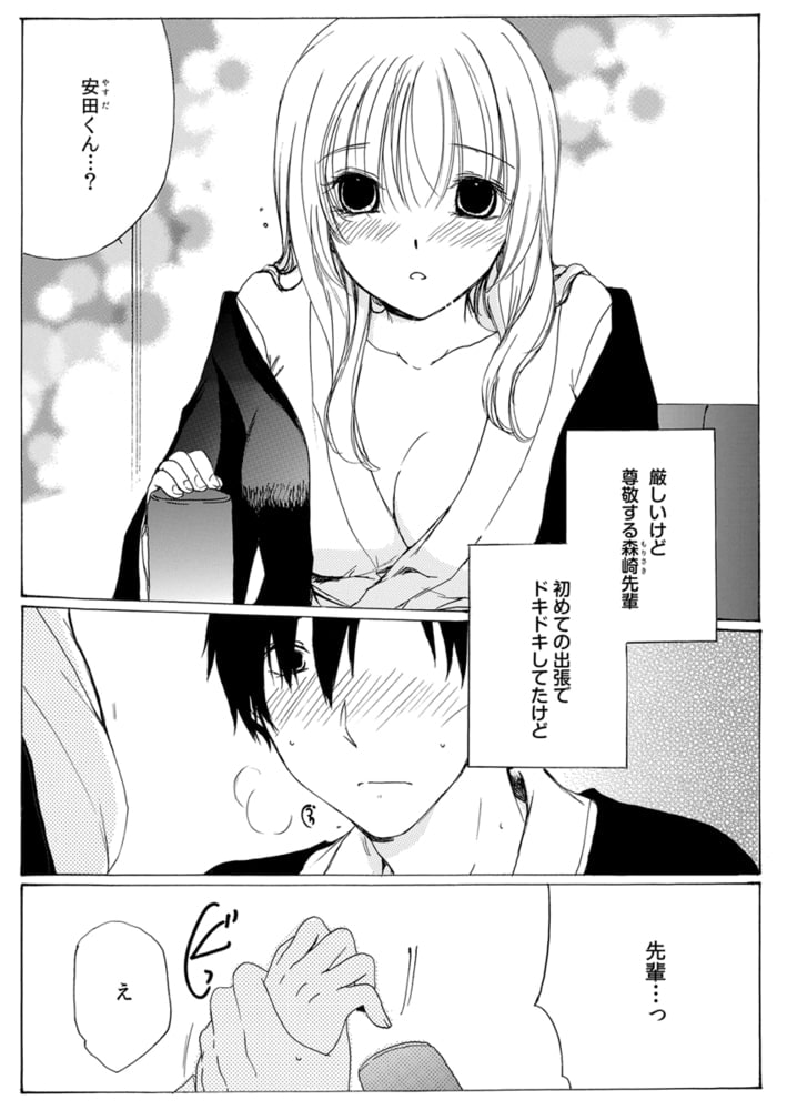 ――出版社で旅行記事を担当している森崎と部下の安田は二人で温泉旅館に出張取材へ。