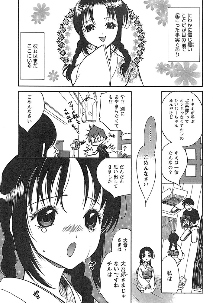 オレの部屋に突然現れた謎の美少女…、オレは彼女のことを知らないのになぜか彼女はオレのことを知っていて…!? 曾祖父の形見の品の1体の人形が突然、オレの呼ぶ声に反応し人間に大変身! 現れたのは「チル」と名乗る着物姿の美少女。チルは曾祖父の元で働いていた使用人で、なんと一度死んだ娘だった…。そんなメイド・チルとオレのものすごくエッチな二人暮らしが始まった。ドキドキ・シュチュエーションの連続の日々が…!※毎月第3土曜に続話配信!