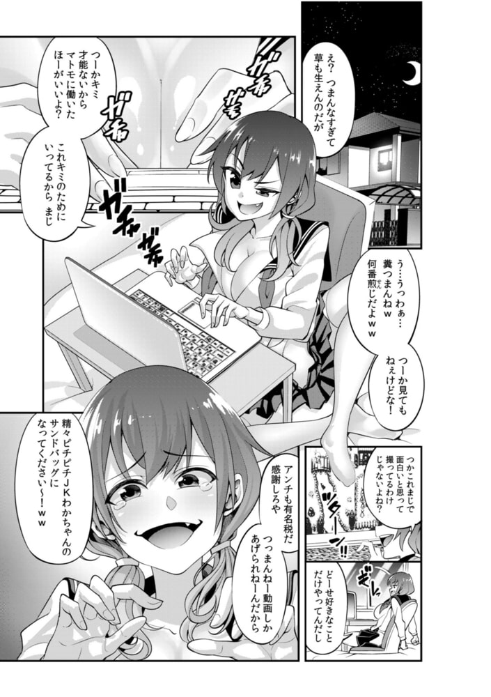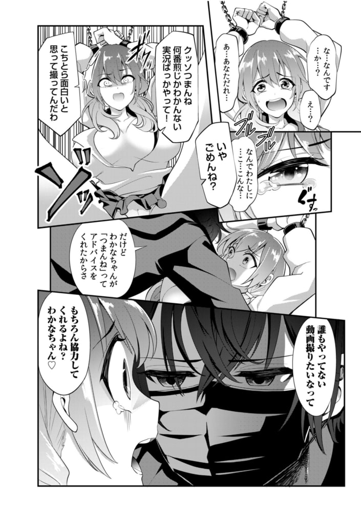 「嘘やだやだやだっ!赤ちゃんできちゃう…!」JK・わかなのストレス発散法は、配信動画への荒らしコメント!毒舌絶好調のわかなは、あばろんを名乗る配信者の動画に罵詈雑言コメントを書き込む…マウントをとって満足していたわかなだったが、突然あばろんの部屋に閉じ込められてしまう…そしてあばろんは『「性悪JKは何度イッたら改心するのか?」という面白ゲームをやっていきます!』と、宣言!そう、あばろんの性的報復実況が始まったのだ!